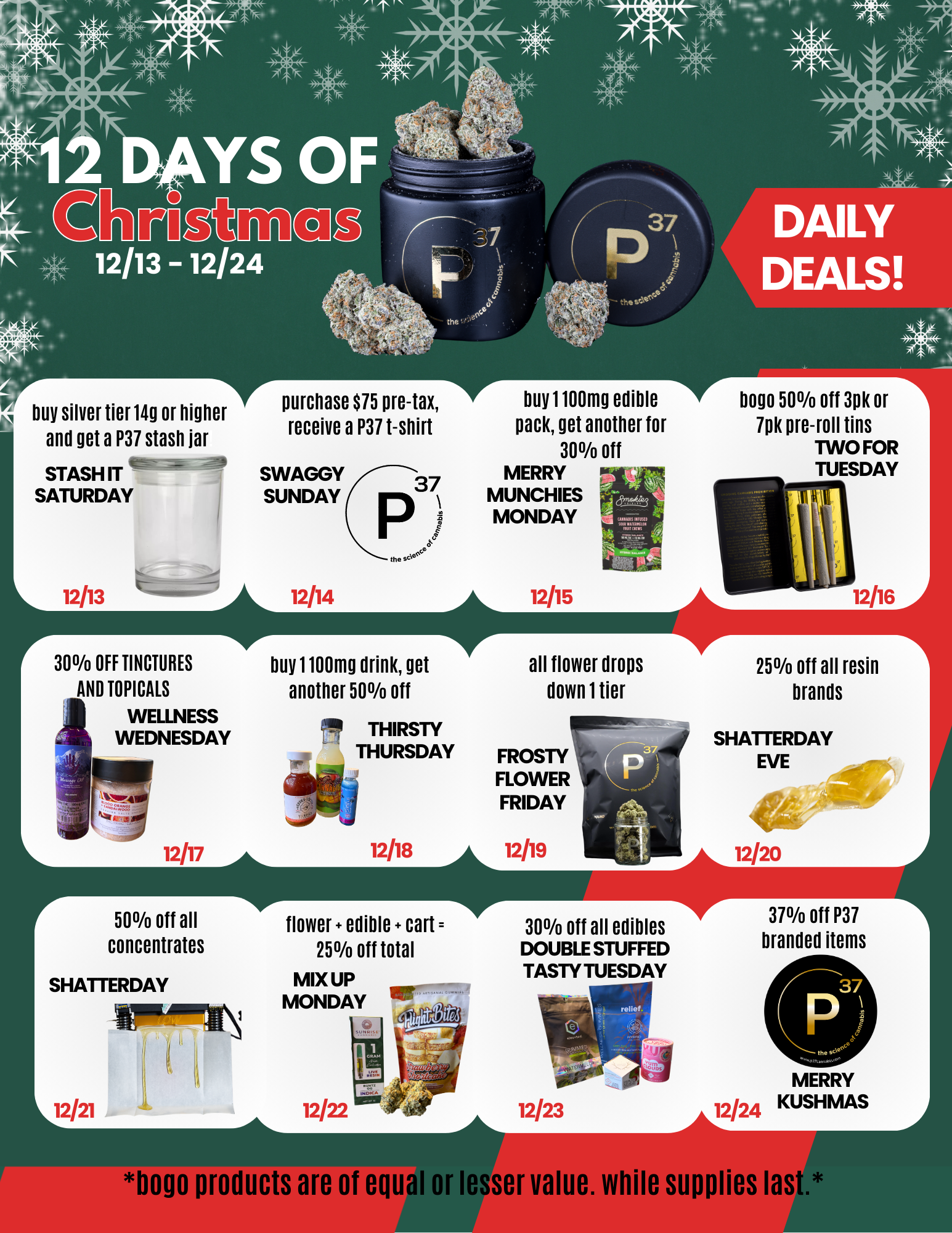 The Full 12 Days of Christmas Cannabis Deals at P37